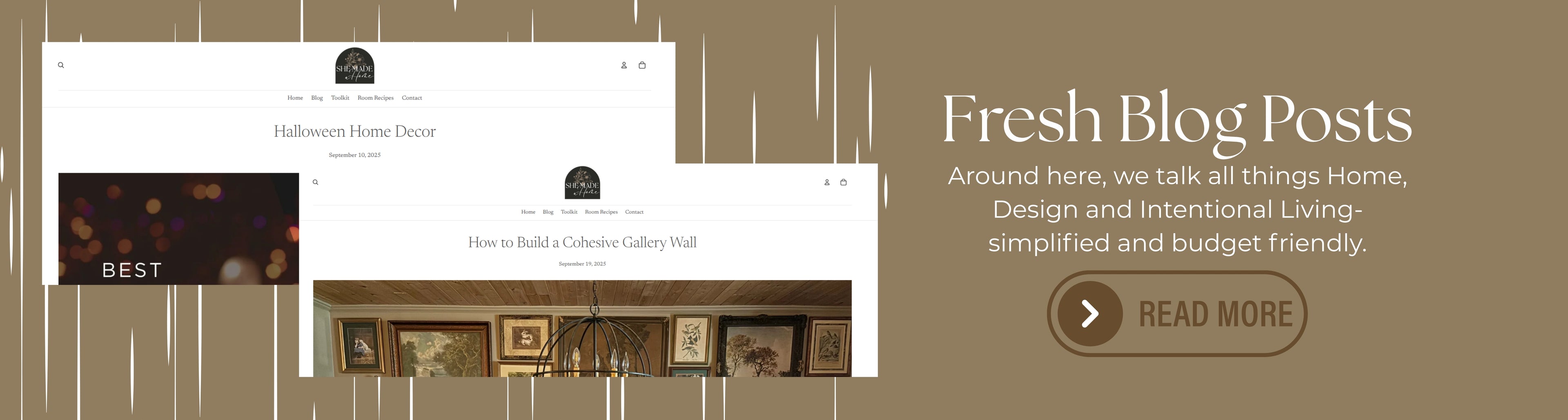 Room Recipes are my ready-to-use interior design plans that make decorating simple, stylish, and affordable. Each one gives you a complete, cohesive look for any room in your home — thoughtfully curated to blend comfort, personality, and budget-friendly finds. Every piece is linked so you can easily shop the exact items and recreate the look in your own space. No guesswork, no stress — just beautiful rooms made easy.